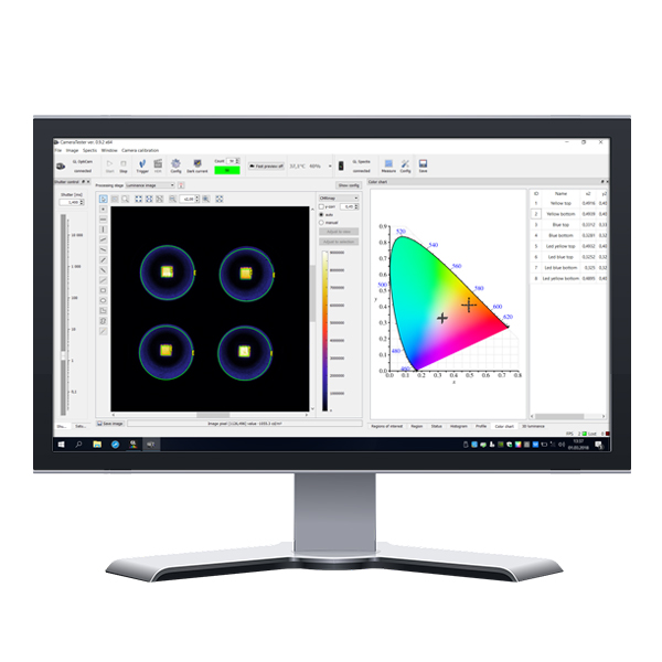 這款新型圖像亮度相機(jī)可與我們的光譜儀器(例如GL SPECTIS 1.0 touch)結(jié)合使用,以比色值(例如CCT,CRI等)擴(kuò)展質(zhì)量控制。此外,它還將提供自動的濾光片失配校正程序,并支持對多色LED器件進(jìn)行測試的測量。