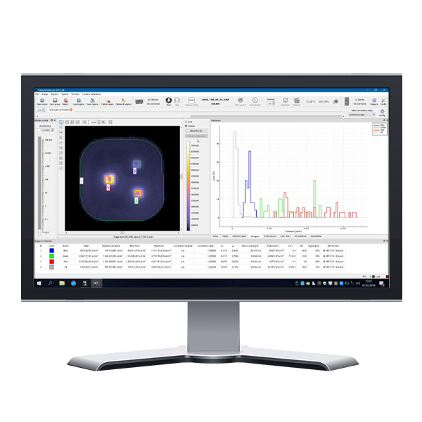 當(dāng)照明設(shè)備或電子板使用不同顏色的LED時,可以將標(biāo)準(zhǔn)OPTICAM 2.0 4K TEC亮度計與GL SPECTIS 1.0觸摸光譜儀結(jié)合使用,以支持亮度和顏色測試與評估。GL SPECTROSOFT具有將亮度攝像機(jī)的測量結(jié)果與光譜輻射測量結(jié)果結(jié)合起來的選項。結(jié)果,可以能夠提供亮度值的失配校正以獲得最高的精度,并提供被測LED產(chǎn)品的所有比色和光譜數(shù)據(jù)。