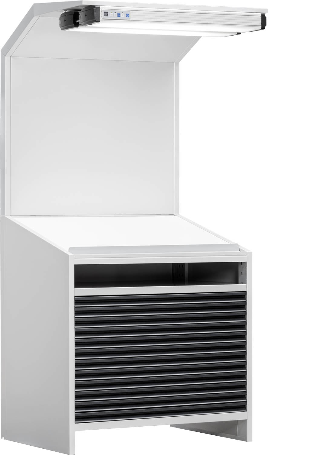 新的JUST LED moduLight彩色打樣燈現已提供帶有方便柜子的經典配色站。使用按鈕的襯套,您可以在D50和D65之間切換,并且可以為任一光源啟用或禁用UV含量。特別是在從FOGRA39轉換到FOGRA51 / 52的過渡時間內,新型LED照明器提供的解決方案是一種實用的解決方案。