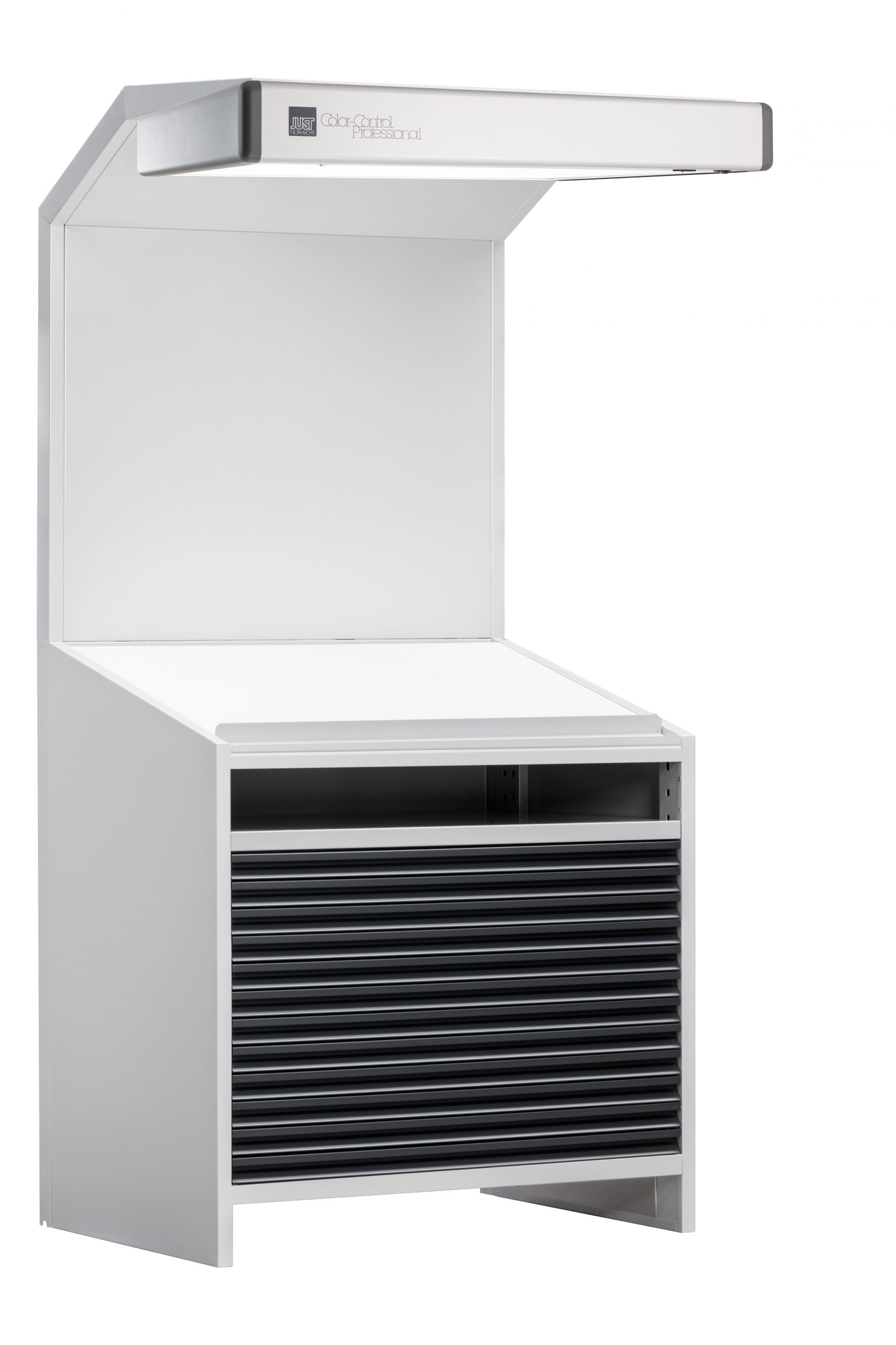 在D50光源下對(duì)多種格式進(jìn)行可靠的關(guān)鍵色彩檢查。經(jīng)典的彩色查看組合以及實(shí)用的底柜和擱板。有組織地存放地塊,樣張和重要的印刷用具。